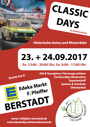"Classic-Bikes meets Classic-Cars" "Ausstellung sowie Treffen von Old – und Youngtimern" "Historischer Motorsport" "Demoläufe der Motorsport-Legenden am Sonntagnachmittag"