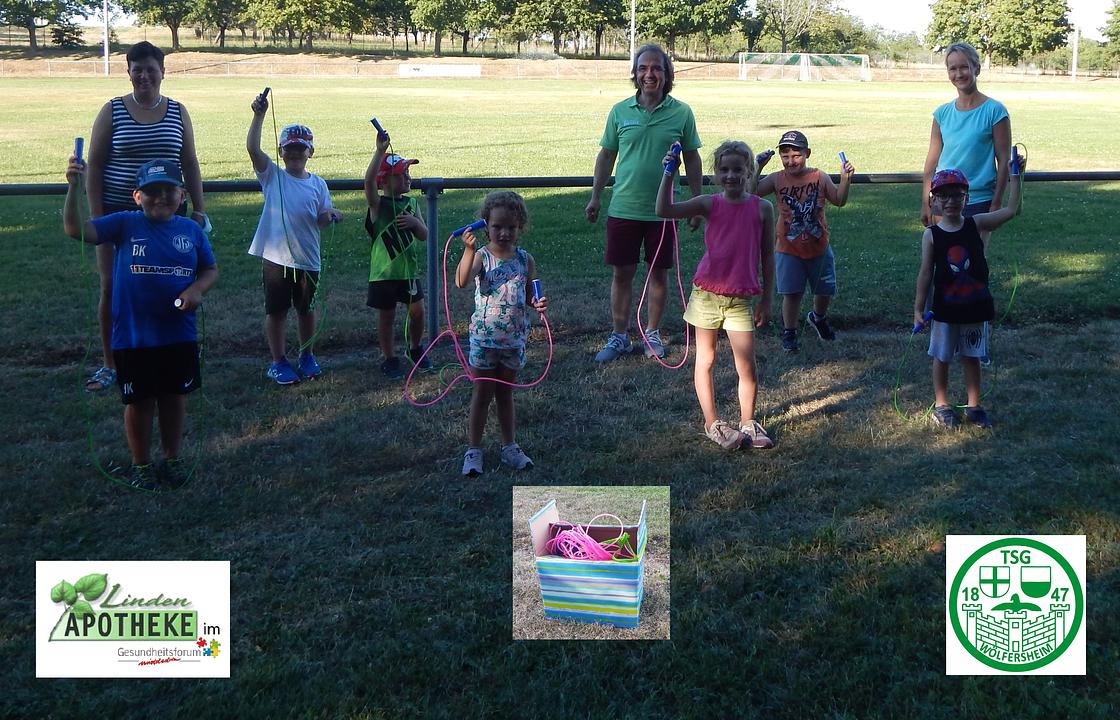 Neulich erhielten die Turntiger der TSG 1847 Wölferheim e.V. zum Training auf dem Sportplatz, Besuch von Hr. Koch der Lindenapotheke mit einem Geschenk für das Kinderturnen. Es wurden Springseile für die Turnkinder gespendet, um in Zeiten von Corona mit deren Auflagen, das Turnen abwechslungsreicher zu gestalten. Der Verein muss sich an die jeweiligen Auflagen der einzelnen Sportverbände halten, was beim Deutschen Turnerbund (DTB) mit der Präferenz `Sport im Freien` und mit möglicher Meidung von Sportmaterialien des Vereins einhergeht.