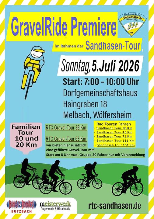 Im Rahmen unserer Sandhasen-Tour bieten wir 4 über GPS-Track zu fahrende Graveltouren an. Die GTF TOUR 1 Vulkan-Gravel kann in Verbindung mit der EARLY-MORNING-GRAVEL (Start um 5:00 in geführter Gruppe am Sportheim der SG-Melbach mit Frühstück nach 45Km Ende geführte Gruppe am Dorfgemeinschaftshaus über Voranmeldung gebucht werden mit Startgeld 20€) aber auch zum ausgeschriebenen Startgeld ab 8 Uhr gefahren werden. Eine Ausschreibung hierzu wird an dieser Stelle mit detaillierten Angaben zur Verfügung gestellt.