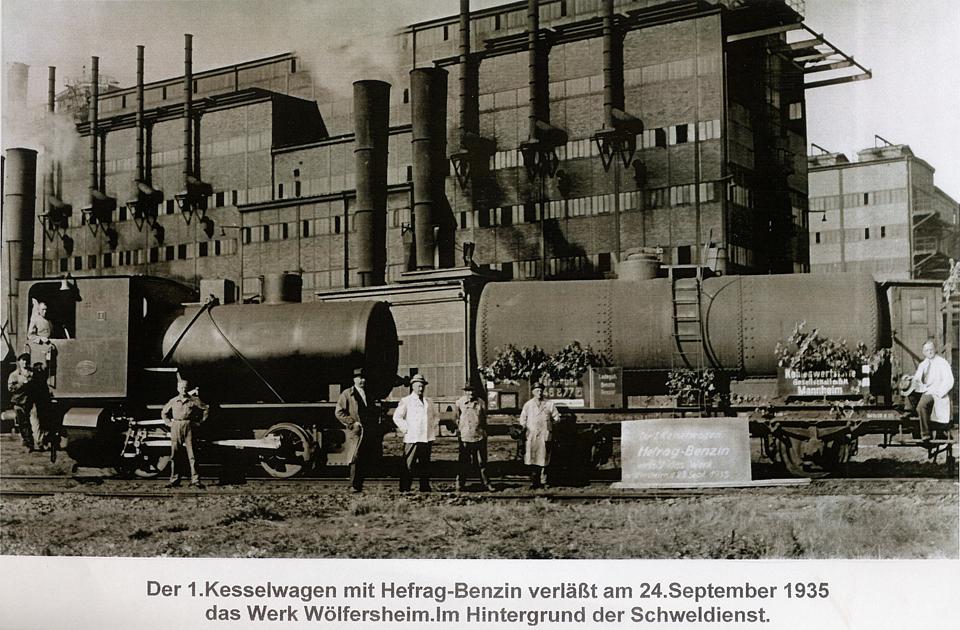 Die Kohle wurde durch Erhitzen auf 600°C unter Luftabschluss in Schwelteer, Mittel- und Leichtöl und Schwelkoks aufgespalten.