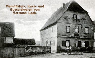 Um 1900 besaß Hermann Loeb in der Untergasse 19 ein stattliches Anwesen, welches früher zur Burg gehörte, in Größe und Bauweise vergleichbar dem Wohnhaus Untergasse 21. Auf der Postkarte werden annonciert: Manufaktur-, Kurz- und Specereiwaren von Hermann Loeb. Er war 1912 Trauzeuge bei Max Mildenberg in Wohnbach. Das Wohnhaus gehörte 1938 seiner Frau Jeannette Loeb. Nachdem sie bei dem Pogrom vom 09.11.1938 übelst misshandelt wurde, verzog sie nach Marburg. Ihre Tochter Hertha Löwenstein forderte nach dem 2. Weltkrieg eine Entschädigung. Die Gemeinde machte dagegen Instandhaltungskosten in gleicher Höhe geltend. Allerdings stellte sich dann heraus, dass im Grundbuch noch immer die Familie Loeb als Eigentümer eingetragen war.