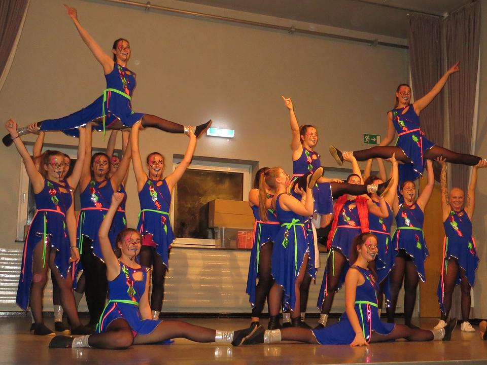 Inzwischen Tradition und als Highlight des Abends erwartet, sind die Auftritte der Showtanzgruppen. Premiere des neuen Tanzes, neue Kostüme, abwechslungsreiche Schrittfolgen und akrobatische Hebefiguren sorgten für Stimmung im Saal. Die Snowflakes tanzten sich, choreografiert von Trainerinnen Maxi Stagel und Stella Baldauf, durch das „Candyland“ und brachten die enge Bühne zum Beben.