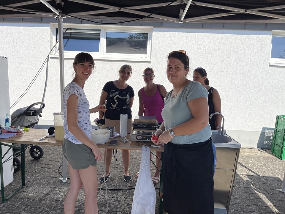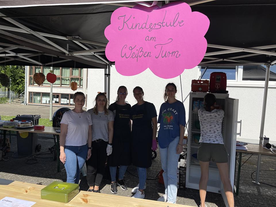 Abgerundet wurde das Angebot des Apfelfestes durch die zahlreichen Stände der Elternbeiräte der Kitas. Dort warteten selbst gebackene Kuchen, Waffeln, Würstchen und viele andere Leckereien. Auf dem angrenzenden Außengelände der Kita Wasserburg konnten die Kinder spielen und toben. „Das Apfelfest war ein voller Erfolg und wir überlegen es auch in den nächsten Jahren gemeinsam mit allen Kitas zu realisieren,“ zeigt sich die für die Kindergärten zuständige Fachbereichsleiterin Nicole Stelzner-Lehmann begeistert. „Ich danke an dieser Stelle allen, die zu dieser Aktion beitragen. Besondern Dank spreche ich Nicole Stelzner-Lehmann und Vanessa Burba für die Organisation , Mats Dieffenbach und Marcel Müller für die Unterstützung beim Transport der gepflückten Äpfel, den Ehrenamtlich der Natur- und Vogelschutzgruppe, den Elternbeiräten für die Bewirtung, unserem Klimaschutzmanager Markus Michel und natürlich allen Eltern aus. Schon die Kleinsten lernen damit den Wert des Naturraums Streuobstwiese zu schätzen,“ lobt Bürgermeister Eike See.