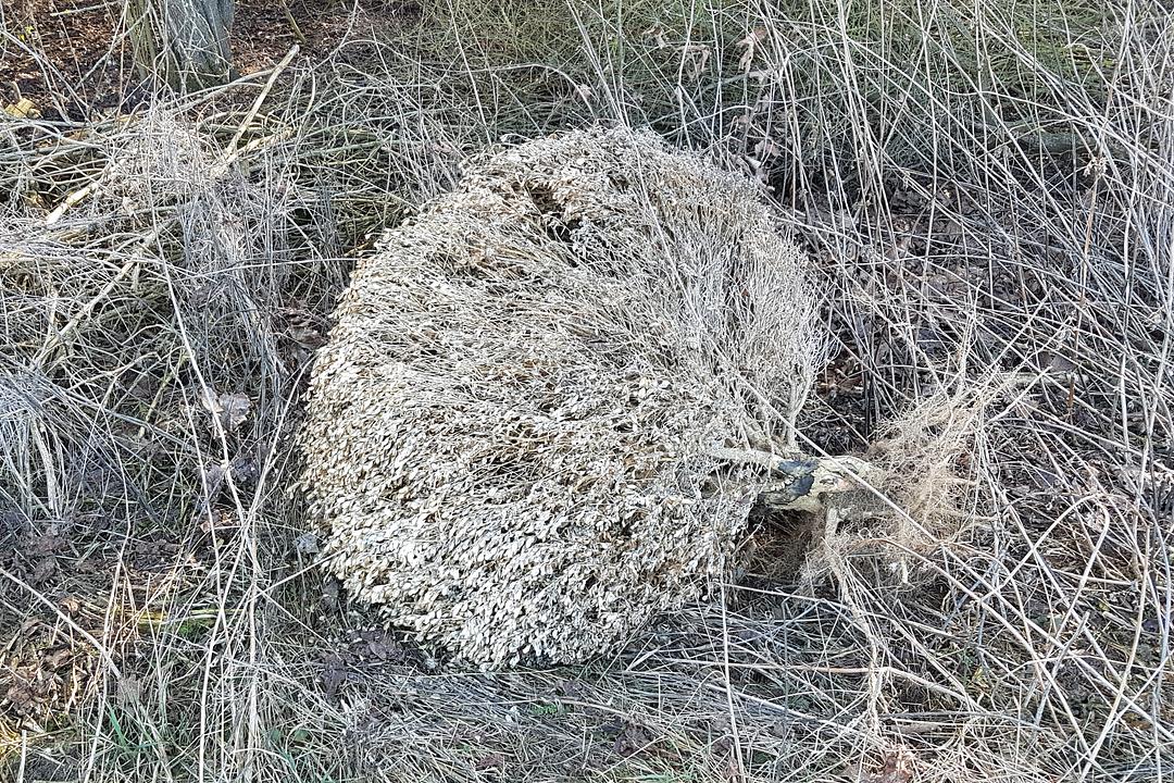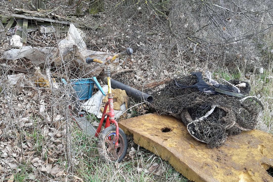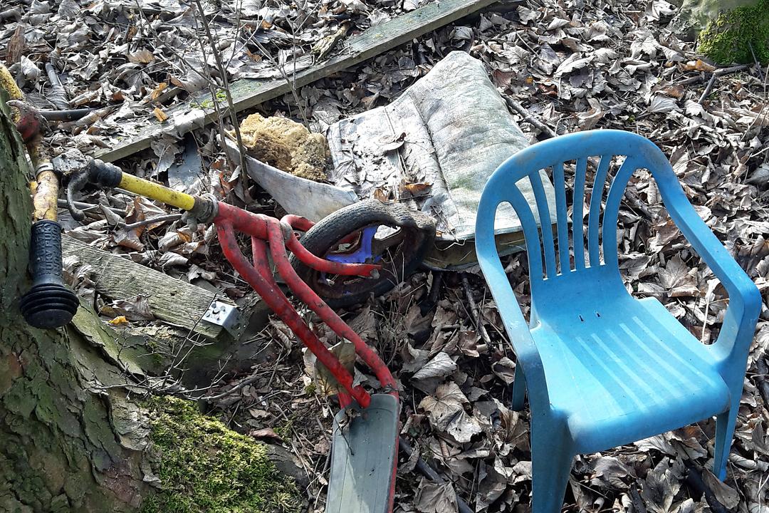 Deshalb haben wir eine erste Entsorgungsmaßnahme durchgeführt: Drahtgeflechte aller Art, große Kunststoffnetze, Plastikplane und Stühle, eine Schaumstoffmatratze, Küchengeräte, Paletten und ein Kinderroller, insgesamt 130 kg, waren die Ausbeute.