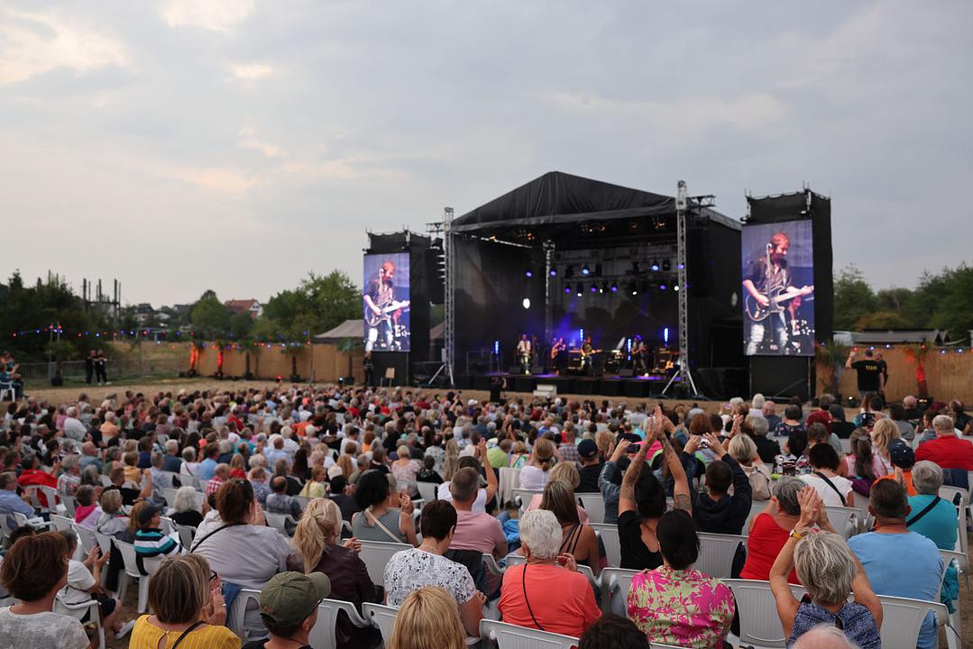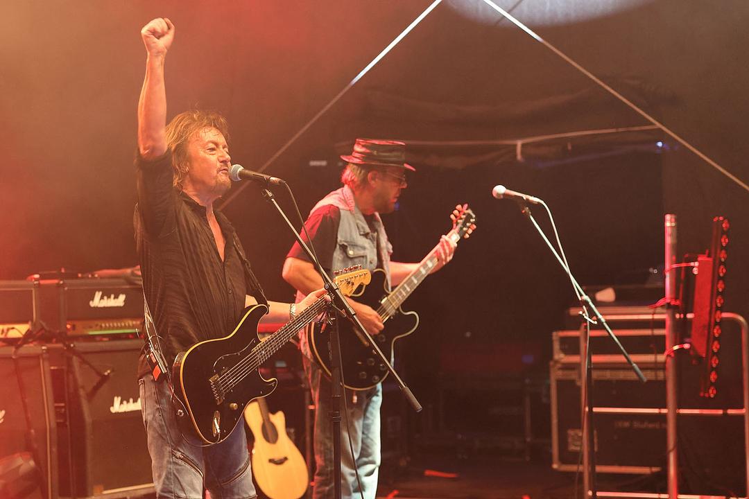 Noch einmal eine gute Viertelstunde zeigte die Band unter anderem mit „Oh, Carol“ und „Wild wild Angel“ große Spielfreude. Norman und Carline rockten ein fantastisches gemeinsames Gitarrensolo, bis schließlich Norman ein letztes Mal auf die Bühne kam, um sich von den jubelnden Fans zu verabschieden. Ein Highlight – der Bürgermeister hatte Recht.