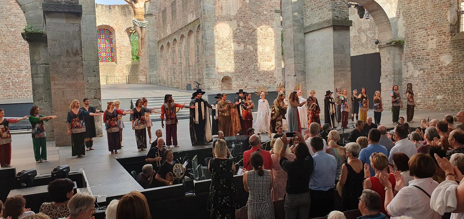 Die 2. Vorsitzende Christa Diether, die bereits seit mehr als drei Jahrzehnten die Kulturfahrten mit großer Resonanz für den Verein organisiert, hatte wieder zu den Bad Hersfelder Festspielen eingeladen. Bei bestem Sommerwetter erlebten die 50 Musical-Fans des Fördervereins in der berühmten Stiftsruine eine großartige und packende Neuinszenierung des weltbekannten Musicals „Jesus Christ Superstar“ von Andrew Lloyd Webber und Tim Rice in der deutschen Version von Anja Hauptmann unter der Regie von Stefan Huber. Unter der musikalischen Leitung von Christoph Wohlleben spielte das Bad Hersfelder Festspiel-Orchester.