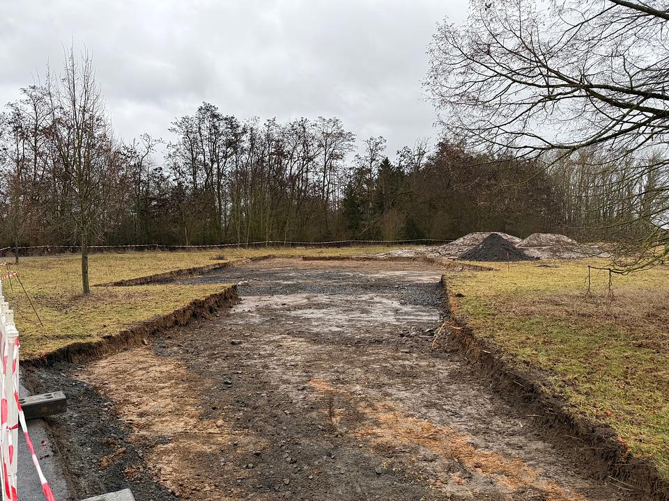Die Lok wiegt mehrere Tonnen und braucht deshalb einen entsprechenden Unterbau. Am Gelände des Solarparks wurden nach einer Untersuchung des Kampfmittelräumdienstes erste Erdarbeiten durchgeführt. Im nächsten Schritt erfolgt eine erneute Untersuchung bevor der Unterbau für die neuen Gleise fertiggestellt werden kann. Die Gleise selbst werden derzeit von den Eisenbahnfreunden in Bad Nauheim hergestellt.