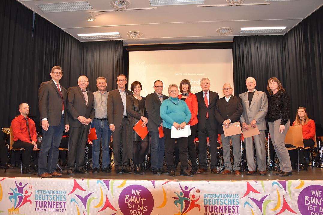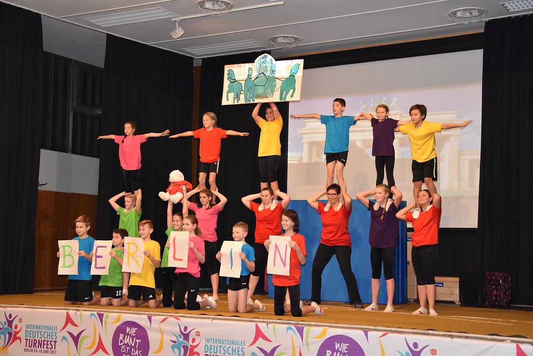 Eine Rückschau auf das Turnfest im Sommer 2017 in Berlin, bei dem der Turnverein mit 22 TeilnehmerInnen vertreten war, unternahm die Gerätturn-Übungsgruppe. Vor dem Hintergrund einer Bilder- und Videoshow zeigten sie vielfältige Einblicke in das Turnen mithilfe von allerlei Gerät. Aus den Reihen des Gerätturnens wurden auch die diesjährige Sportlerin des Jahres Chiara Fehrmann und der Sportler des Jahres Miguel Feyh mit einem Wanderpokal ausgezeichnet.