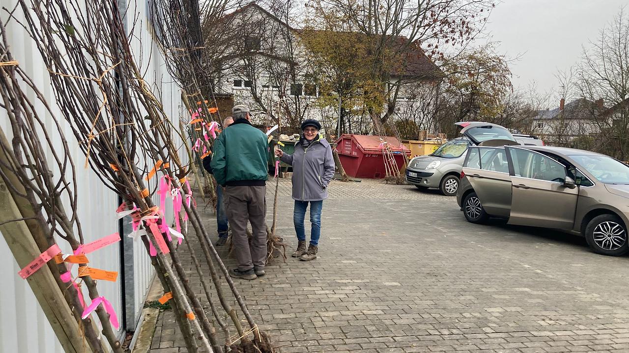 Auf dem Ausgabegelände des Betriebshofes hinter der Wetterauhalle herrschte reger Betrieb, doch dank der sorgfältigen Vorbereitung verlief die Verteilung reibungslos. Viele der Abholenden nutzten die Gelegenheit für kurze Gespräche und dankten der Gemeinde für das kontinuierliche Engagement zur Förderung der Streuobstwiesen. Insgesamt wurden 127 Bäume ausgegeben, darunter 87 Halbstämme, 35 Hochstämme und fünf Laubbäume. Zahlreiche Teilnehmende holten darüber hinaus das passende Pflanzzubehör ab, das im Rahmen der Sammelbestellung ebenfalls angeboten wurde.