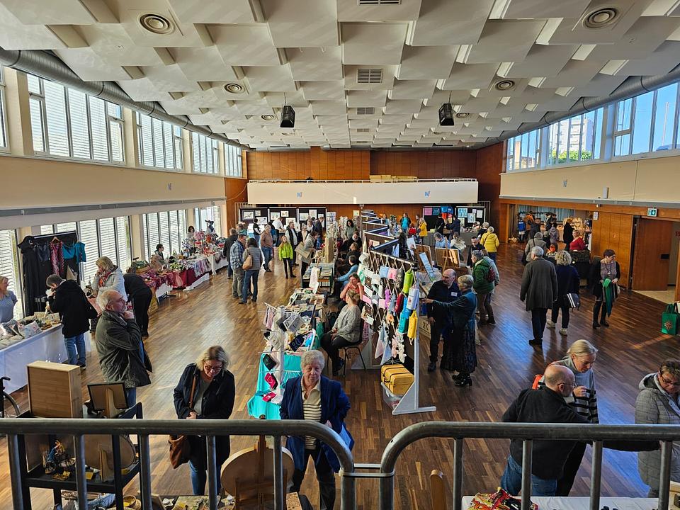 Im Angebot waren bereits die ersten Adventskränze, viel weihnachtliche Dekoration, aber auch handgemachte Seife, Bastelarbeiten aller Art, selbst gemachte Postkarten, Kuscheltücher für Babys sowie Plätzchen, Eierlikör, Honig oder Apfelwein - alles aus eigener Produktion. Zwei kleinere Programmergänzungen wurden ebenfalls gut angenommen: die Spiel- und Bastelecke für Kinder im Foyer und das Angebot des Foodtrucks von „Alex Bestburger“ im Außenbereich.