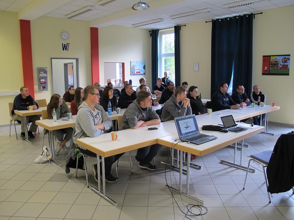 Der Tag begann für uns bereits um 8 Uhr morgens. Zwei Kameraden von der AG BFT (Arbeitsgemeinschaft Brandschutz, Feuerwehr und Training e.V.) aus Allendorf waren bei uns zu Gast. Angefangen wurde zunächst mit einem theoretischen Teil, bei dem die Grundlagen und Vorgehensweisen der Rettung bei Verkehrsunfällen erläutert wurden. Außerdem haben wir erfahren, worauf insbesondere bei den heutigen modernen Fahrzeugen zu achten ist. Die moderne Elektronik und Sicherheitstechnik wie Airbags, machen zwar das Fahren sicherer, aber die Feuerwehr hat es dadurch nicht unbedingt leichter bei der Rettung und muss auch zur eigenen Sicherheit viel beachten.