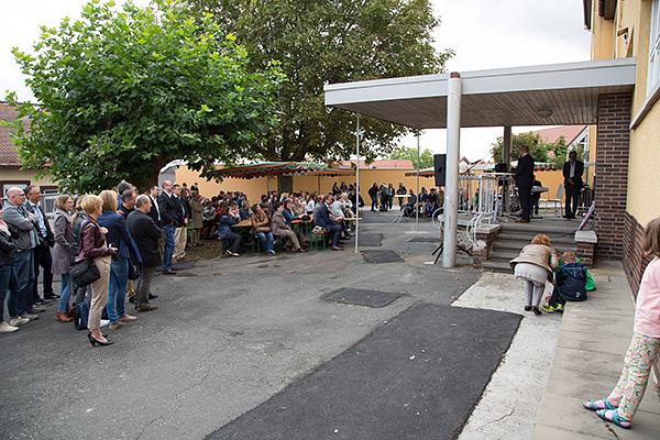 Schuldezernent Helmut Beschel lobte ebenfalls das große Engagement innerhalb der Schulgemeinde, beschrieb den parlamentarischen Prozess der Entstehung dieser Oberstufe, der viele Gespräche und Überzeugungsarbeit erfordert habe, nun aber große Chancen für die bildungspolitische Entwicklung dieser Region biete. Besonders stellte er die gute und unbürokratische Arbeit mit der Gemeinde Wölfersheim hervor, die maßgeblich für die Renovierung der alten Grundschule verantwortlich war. Die perfekte Zusammenarbeit von Mitarbeitern der Gemeinde, Fachfirmen und Flüchtlingen sei beeindruckend gewesen. Für das Lehrerkollegium der Schule dankte Personalrat Olaf Grieger allen Beteiligten für die große Entwicklungsmöglichkeit, die der Singbergschule durch die neue Oberstufe zuwachse.