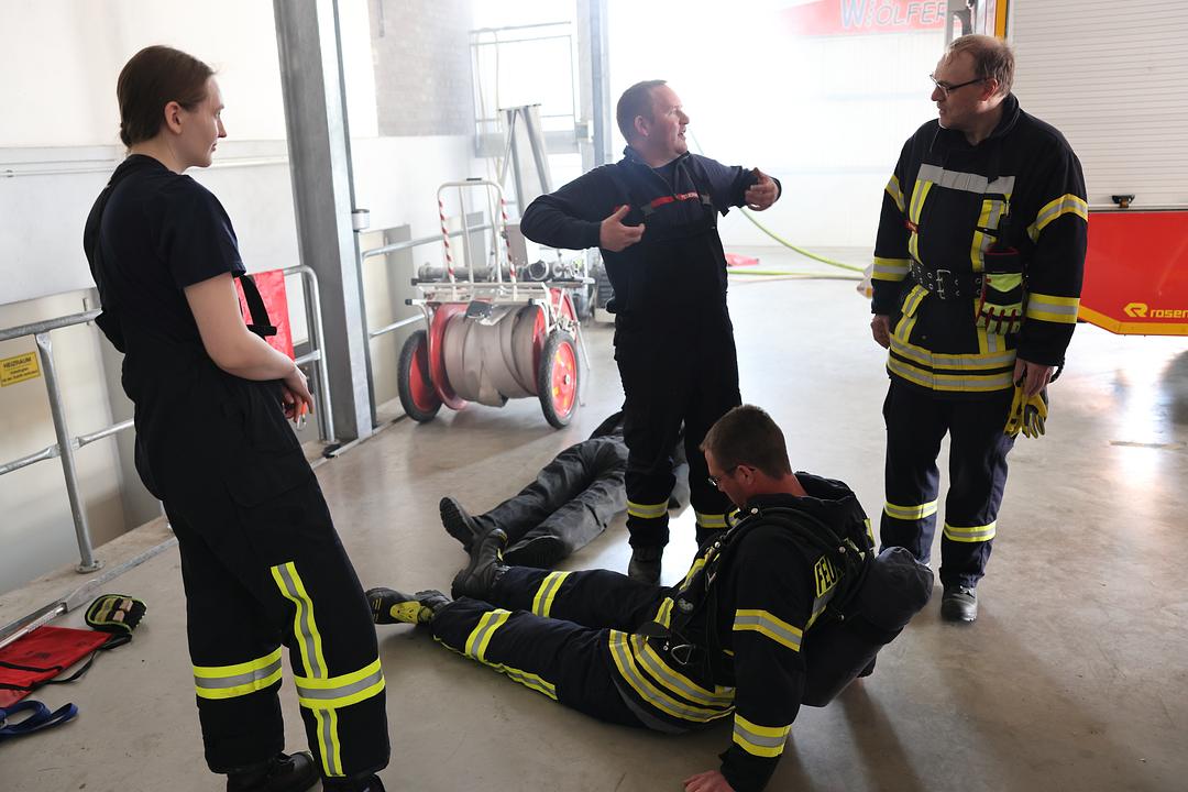 Nachdem am 18. April bereits eine gemeinsame theoretische Unterweisung durchgeführt wurde, folgte am Samstag der praktische Teil. Es wurden in drei Stationen verschiedene Themen trainiert. Es gab die Stationen: „Menschenrettung im Atemschutzeisatz“, „Einsatz der Wärmebildkamera“ und „jährliche Einsatzübung unter Atemschutz“.
