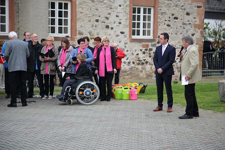 Nach einem Gottesdienst, der vom Präses des Evangelischen Dekanats Wetterau, Tobias Utter, unter Mitwirkung des Gesangvereins Liederkranz durchgeführt wurde, fand eine kleine Feierstunde auf dem Kirchhof statt. Die kurz zuvor schon gepflanzte neue Kastanie wurde von Magda Gerlach, in Erinnerung an die, bis 2004 an gleicher Stelle befindliche, alte Schulhofkastanie in Melbach willkommen geheißen. Der langjährige, ehemalige Lehrer am Grundschulstandort Hanspeter Knobloch erinnerte mit seinem Gedicht „Starke Wurzeln“ an die alten Zeiten und brachte seine Freude über den neuen Baum als Zeichen der Verbundenheit mit Melbach zum Ausdruck. Sebastian Göbel und Thomas Gerlach sangen, passend zur Baumpflanzung, den Titel „Der Baum des Lebens“. Bürgermeister Eike See lobte sein Bauhof-Team für die geleistete Vorarbeit und rief anschließend Magda Gerlach, den Schirmherren Joachim Arnold, Karl-Ernst Kunkel, Carmen Körschner, Hanspeter Knobloch, Inge Kleberger und die Vereinsmitglieder Heike Marloff, Heike Meiss und Wolfgang Weller zum Angießen des Baumes auf. Zur Mittagszeit lud der Verein „Gemeinsam für Melbach“ zu einem Imbiss in das evangelische Gemeindehaus ein, an dem auch die 1. Kreisbeigeordnete Stefanie Becker-Bösch teilnahm.