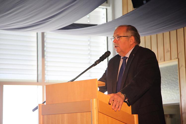 Der 1. Vorsitzende von „Gemeinsam für Melbach“ Karl-Ernst Kunkel fasste in seiner Festrede noch einmal die bisherigen Aktivitäten der 1200-Jahr-Feier von der Vereinsgründung bis zum heutigen Tag zusammen. Ein besonderer Dank ging an die beiden Schirmherren und an die Gemeinde Wölfersheim für die hilfreiche Unterstützung in allen Bereichen. Karl-Ernst Kunkel wies auch auf die noch folgenden Veranstaltungen bis zum Jahresende hin. Landtagspräsident Norbert Kartmann, der, wie alle anderen Ehrengäste, auch aus der Wetterau stammt, überbrachte die Glückwünsche der hessischen Landesregierung und des Parlaments. Die Schirmherren Joachim Arnold und Rouven Kötter bezeugten, neben den Gratulationen, ihre Verbundenheit mit dem Ortsteil Melbach mit Anekdoten aus ihrer jeweiligen Amtszeit als Wölfersheimer Bürgermeister. Landrat Jan Weckler überbrachte die Glückwünsche des Wetteraukreises und überreichte dem neugewählten Wölfersheimer Bürgermeister und dem Verein „Gemeinsam für Melbach“ für den Ortsteil Melbach die „Freiherr-vom Stein-Ehrenurkunde“. Sie kann Städten und Gemeinden, nach einem Erlass der Hessischen Landesregierung, verliehen werden, die mindestens 750 Jahre oder älter sind und dieses Ereignis in festlicher Weise feiern. Diese Auszeichnung geht auf den preußischen Minister und Staatsreformer Heinrich Friedrich Karl vom und zum Stein zurück, dessen Wirken auf die Stärkung der kommunalen Selbstverwaltung ausgerichtet war und dessen Zitat „Zutrauen veredelt die Menschen, ewige Bevormundung hemmt das Reifen!“ als sein berühmtestes politisches Bekenntnis gilt.