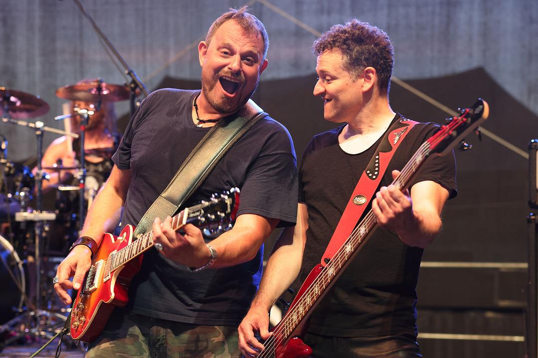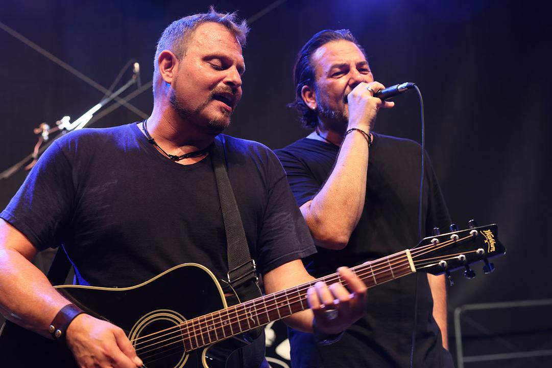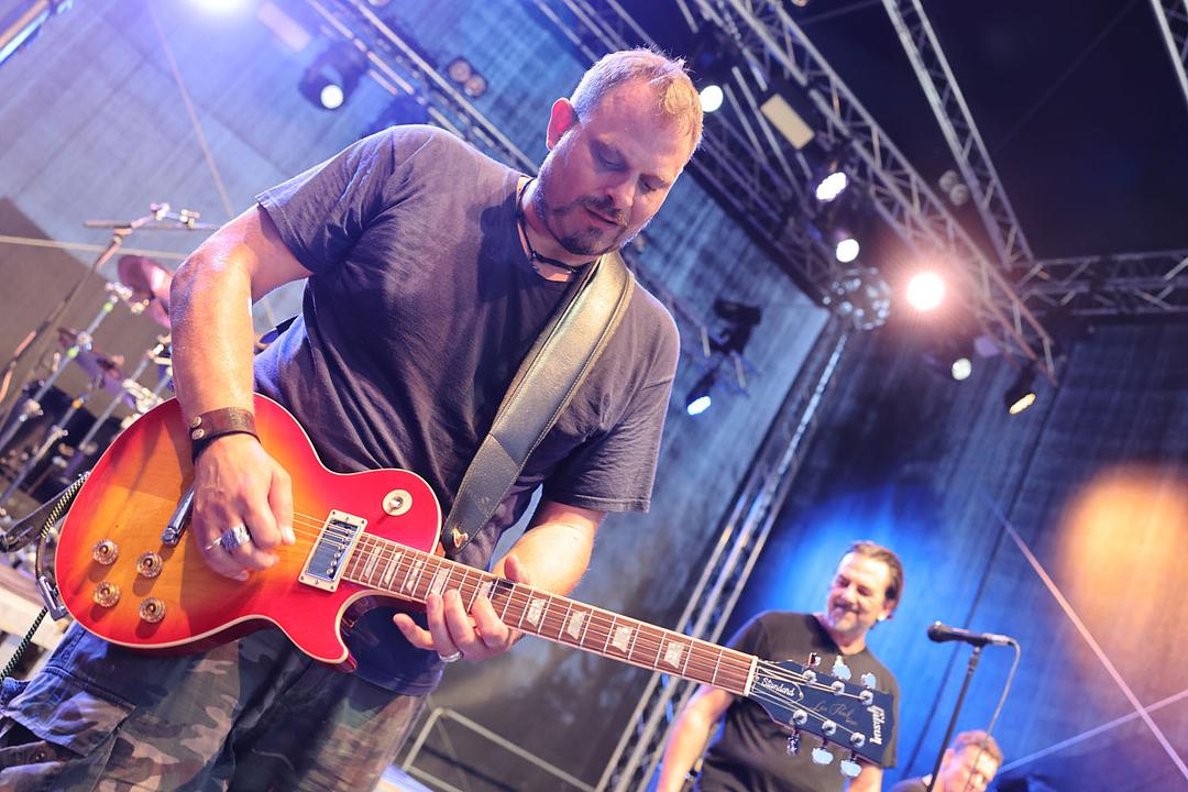 Vierter im Bunde ist aktuell Rene Zinsheimer, der mit seinem variablen Spiel ebenso überzeugte, wie der Rest der Band. »Back in Black« von AC/DC gehört ebenso zum Repertoire der Hardrocker wie »Come as you are« von Nirvana oder »Boys of Summer« von Don Henley, dem Leadgitarristen der Eagles. »Wir spielen das aber härter«, sagte Senyar. Gleiches gilt auch für die H-Blockx-Version des Johnny-Cash-Klassikers »Ring of Fire«. Mit Country-Musik hat die Version rein gar nichts mehr zu tun, umso mehr mit fetzigem Rock. Nicht fehlen durften mit »Sonne« und »Feuer frei« zwei Rammstein-Klassiker.
