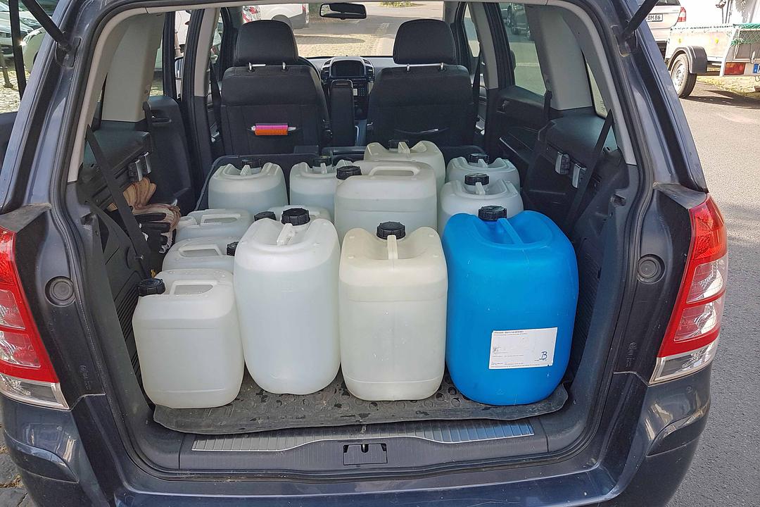 Die erste Zeit haben wir sie mit Kanister gefüllt, das war auf Dauer für uns ältere Herren unmöglich.