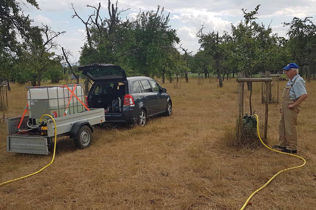 In den letzten Wochen waren wir hauptsächlich mit dem Gießen der jungen Streuobstbäume beschäftigt. Ca. 80 Bäume haben wir in den letzten Jahren gepflanzt, fast alle befinden sich auf Gemeindeeigentum und gehören auch der Gemeinde. Wir pflegen sie nur.