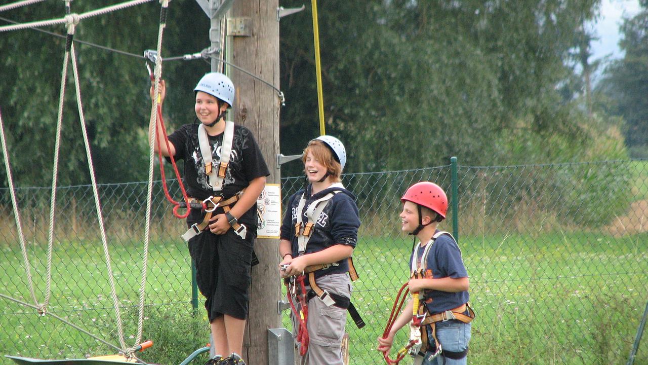 Noch am Nachmittag wurde die Kletterausrüstung angelegt und der Hochseilgarten bezwungen. Nach einigen Gruppenübungen am Boden, bei denen die Teamarbeit und gegenseitiges Vertrauen gefragt waren, bewiesen Wölfersheims Jungbrandschützer, dass sie sich auch in luftigen Höhen bestens fortbewegen können. Von Höhenangst war selbst an der überdimensionalen Schaukel nichts zu spüren. Einige der Jugendwarte und Betreuer stellten sich auch der Herausforderung und machten dabei keineswegs eine schlechte Figur. Da leider jeder Spaß auch mal ein Ende hat, folgte nach einigen Stunden auch wieder der Abstieg. Doch dieser sollte es noch einmal in sich haben. Über eine Seilbahn führte der Weg über das gesamte Gelände des Kletterparks und verschaffte allen einen letzten Adrenalinstoß.