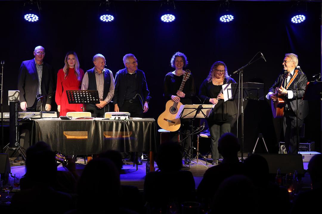 Das opulente, knapp dreistündige Programm versprühte Witz und Mitmenschlichkeit, manchmal leise Melancholie, Freude an den kleinen Dingen und Demut. Zugleich offenbarte die Lesung die schauspielerischen und rhetorischen Qualitäten der beiden Pädagogen, die Beifallsstürme hervorriefen. Sensibel unterstützt wurden Meyer und Wächter von Stefan Bodem (Keyboard), Bettina Skottke (Gesang), Thomas Gerlach (Gitarre, Gesang), Andrea Reinelt (Gitarre), Katharina Bucher (Querflöte). Das Ensemble begleitete die Rezitatoren zum Teil mit klassischen instrumentalen Intermezzi, zum Teil mit intensiven Folk- und Popsongs von Hannes Wader bis Hubert von Goisern, Peter Maffay, Ina Deter und Ina Müller. Dabei ergänzten sich die Stimmen von Bettina Skottke und Thomas Gerlach perfekt in ihren jeweils sehr unterschiedlichen Soli. Bei „Wenn du so bist wie dein Lachen“ (Deter) und dem Nessaja-Song von Maffay wurde im Saal ebenso leise mitgesungen wie bei Waders „Heute hier, morgen dort“ über die Flüchtigkeit allen Seins, einschließlich einem Moment des Lachens.