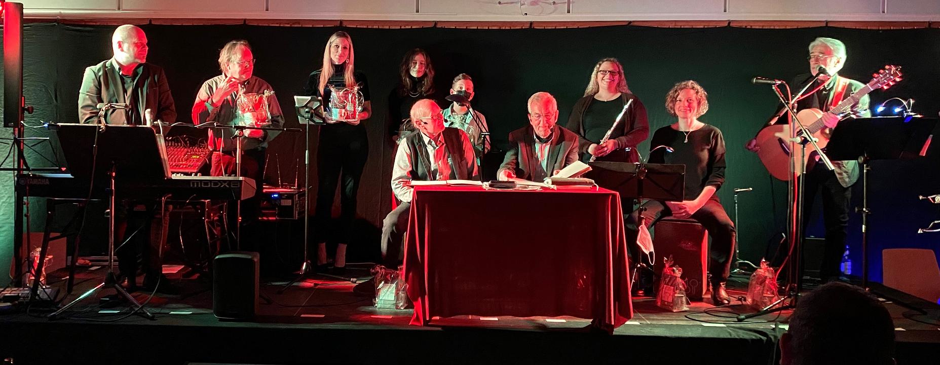 Trotz der besonderen Rahmenbedingungen (Corona) und der immerhin nahezu dreistündigen Dauer der Veranstaltung nahmen die zahlreich erschienenen Besucher*innen dieses spezielle Angebot einer thematischen Lesung mit ausgewählten Musiktiteln interessiert, begeistert und dankbar an. Nach dem Finale forderte das beifallsfreudige Publikum eine Zugabe, die dann auch, gemeinsam mit den Musikerinnen und Musikern gestaltet wurde. Winfried Gramatte bedankte sich mit kleinen Geschenken im Namen des Vereins 1250 Jahre Wohnbach und versprach eine Wiederholung, sobald die Pandemie es möglich machen würde.