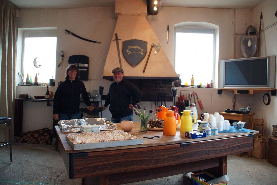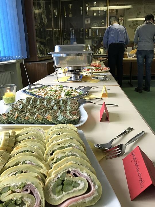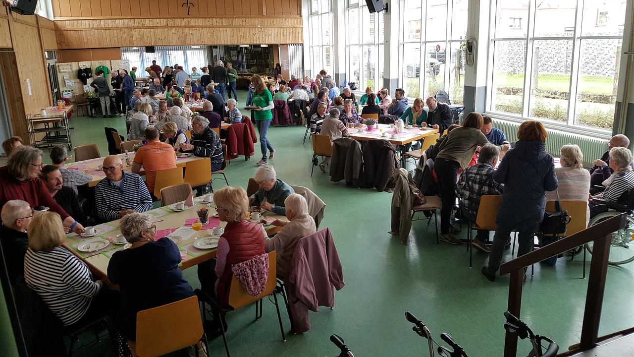 Waren es am Vormittag bereits mehr als 50 interessierte Teilnehmerinnen und Teilnehmer, so hatten sich für den Nachmittagsrundgang über 90 Besucher angemeldet. Um die Gäste bei Kräften zu halten, hatte der Gesangverein „Liederkranz Melbach“ für den Verein “Gemeinsam für Melbach“ und die Teilnehmer der Rundgänge einen Frühjahresbrunch im Dorfgemeinschaftshaus organisiert. Die Aktiven des Gesangvereins zeichneten für ein opulentes und sehr vielseitiges Buffet verantwortlich, das restlos ausgebucht war und keine Wünsche offenließ.