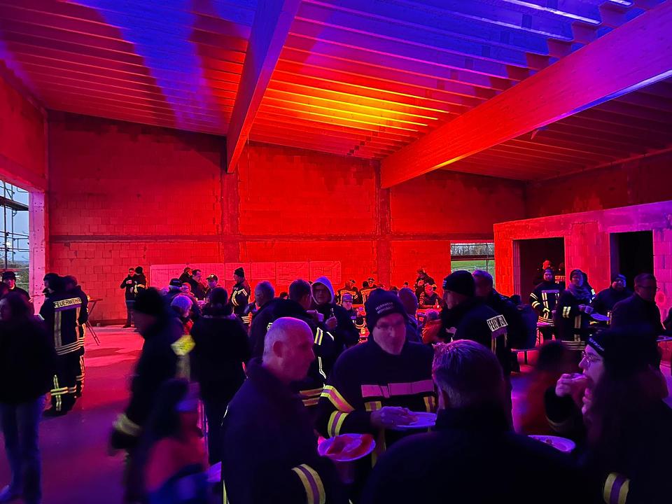 Im Anschluss bestand die Möglichkeit sich im Inneren des Gebäudes vom Fortschritt der Arbeiten und den entstehenden Räumlichkeiten zu überzeugen. Bei Essen, kühlen und heißen Getränken ließ man den Abend gesellig ausklingen. Ein besonderer Dank gilt an dieser Stelle Karina Stöckl und dem Team des Betriebshofes für Organisation und Aufbau. „Diese Veranstaltung markiert einen wichtigen Meilenstein in der Zusammenarbeit der Feuerwehren von Melbach und Södel und symbolisiert das Engagement und die Wertschätzung der Gemeinde für die Einsatzkräfte der Feuerwehr,“ so Bürgermeister Eike See abschließend.