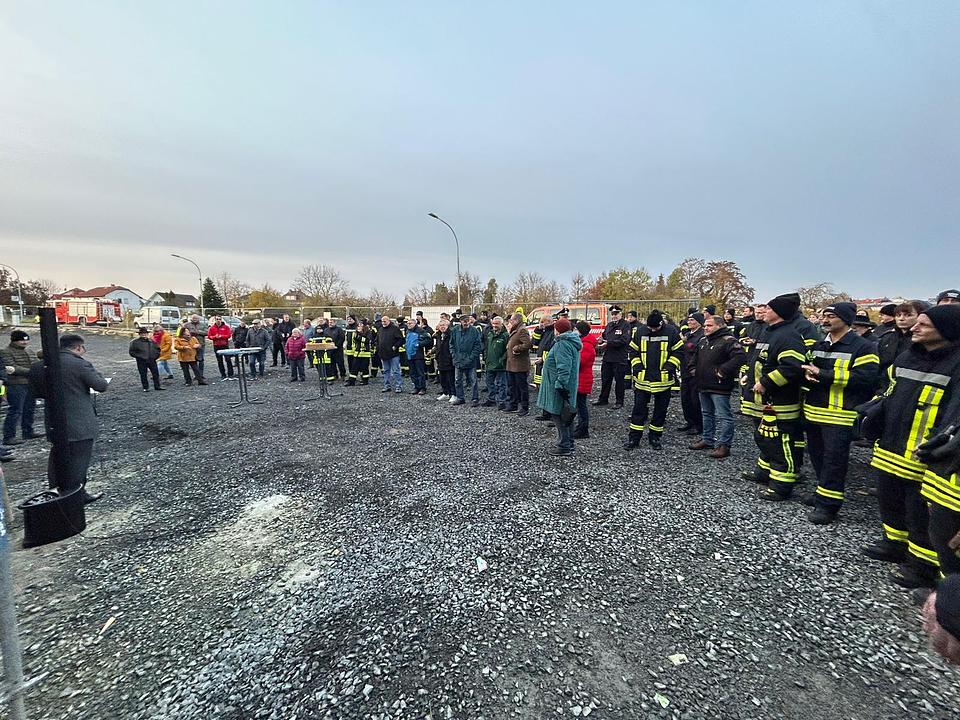Bürgermeister Eike See begrüße die Gäste und blickte dabei auf die bisherigen Entwicklungen zurück. Am 1. Mai 2019 wurde er von den Wehrführern der beiden Ortsteile erstmals auf das Projekt angesprochen. Bis die Bauantragsunterlagen im Frühjahr 2022 eingereicht werden konnten, war viel Arbeit notwendig. „Das wir heute hier stehen können ist das Ergebnis umfangreicher Planungen und Abstimmungen, einschließlich der Besichtigung mehrerer moderner Feuerwehrgerätehäuser und der intensiven Zusammenarbeit mit verschiedenen Fachleuten und Behörden,“ unterstrich See und dankte neben den Projektverantwortlichen Hochbauleiter Anton Krippner, Klimaschutzmanager Markus Michel und Fachbereichsleiter Thorsten Höhne besonders den Ehrenamtlichen für ihren Einsatz und die gute Zusammenarbeit. In zahlreichen Sitzungen arbeiteten die Verantwortlichen an den Details des Bauantrags. Ein besonderes Augenmerk lag auf der Erstellung einer detaillierten Konzeptstudie und der Einplanung der erforderlichen Mittel. Die finalen Förderanträge wurden im September gestellt.