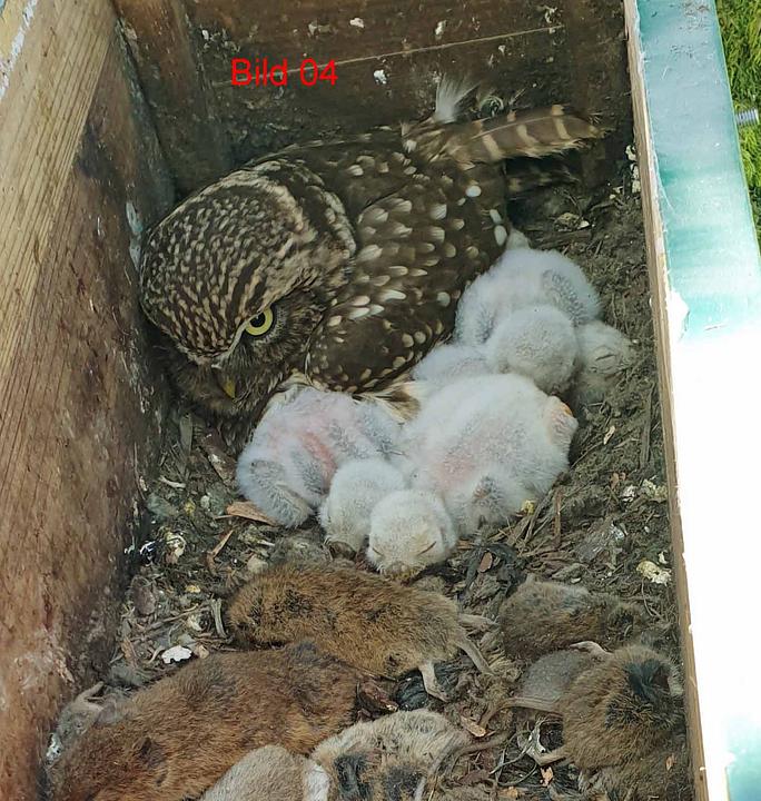 Von Mai bis Juni wurde dann der Bestand an Jungvögeln in den Steinkauzröhren kontrolliert. 51 Jungvögel konnten beringt werden, so viele waren es noch nie!