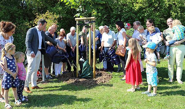 Um langfristig an das Jubiläum der Stiftung zu erinnern wurde ein Baum am Rundweg um den See gepflanzt. Dabei handelt es sich um eine Flatterulme. Die Flatterulme ist Baum des Jahres 2019 und kommt sehr gut mit den feuchten Böden um den See zurecht. Gewässert werden muss der Baum aber trotzdem. Zum Abschluss des offiziellen Teils wurde er von Stiftungsvorstand und Stiftungskuratorium offiziell angegossen.