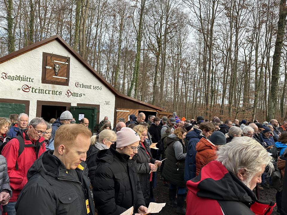 Realisiert wird die Waldweihnacht seit jeher von den Wohnbacher Waldjägern, die auch diesmal viel Vorarbeit geleistet haben, um den erwarteten Gottesdienstbesuchern in freier Natur auch einen Imbiss sowie einen wärmenden Schluck zukommen zu lassen. Zur Eröffnung des Gottesdienstes spielten traditionell die Bläser des Musikvereins Dorn-Assenheim, die auch die gesungenen Weihnachtslieder begleiteten. Die Weihnachtsansprache hielt wie in den vergangenen Jahren der Münzenberger Pfarrer Uwe Wagner-Schwalbe.
