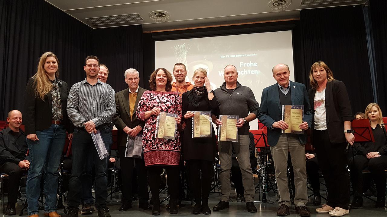 Ariane Klaus führte anschließend durch den Abend. Mit Josefin Muschs Vortrag eines Weihnachtsgedichts startete das weitere Programm. Der Jugendvorstand hatte bei seinem Sketch über ein verdrehtes Radioprogramm die Lacher auf seiner Seite. Die Leistungsriege zeigte ihr Können an verschiedenen Geräten und die Freitagsriege brachte mit „Wellermann“ einen eindrucksvollen Auftritt auf die Berstädter Bühne. Eingerahmt wurden der Abend durch festliche Musik des Blasorchesters, unter der Leitung von Josef Retter.