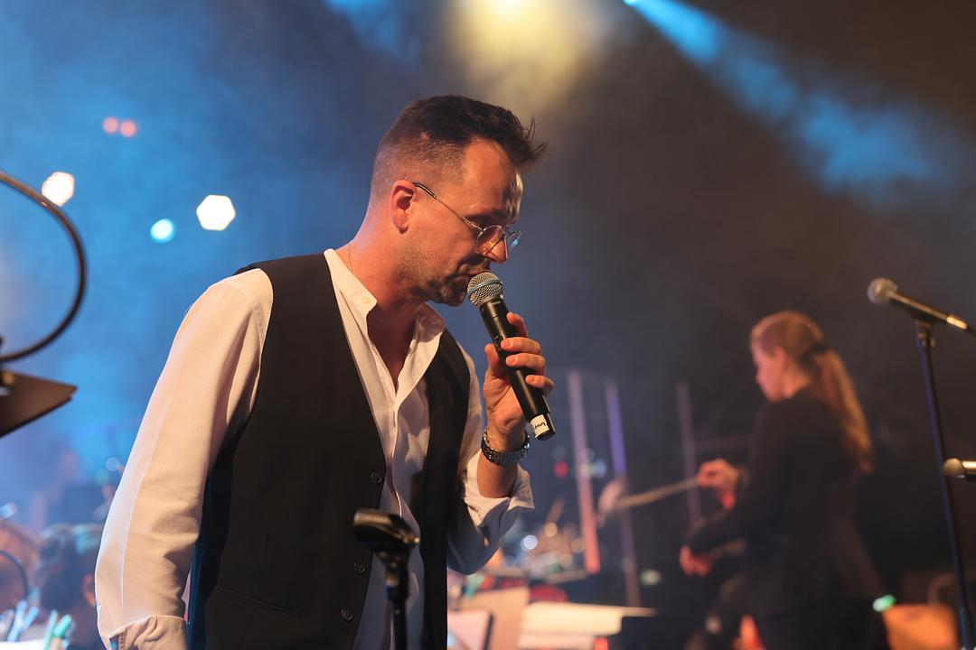 Die Kronberger Pop-Sängerin Katrin Glenz ist beim Wölfersheimer Festival längst keine Unbekannte mehr. Aber sie schafft es stets erneut, ihrer farbenreichen Stimme neue Facetten abzugewinnen. Bei „Komm aufs Meer!“ ging das vom diffusen Leuchten der Enya-Kompilation „Life of the Ocean“, die Glenz in lyrischer Weite aussang, bis zum vokalen Energiebündel im durch Tina Turner legendär gewordenen „Proud Mary“. Thomas Bopp ist neu im Team der Capitol-Sinfoniker und legte ein stimmlich charakteristisches und in der Bühnenpräsenz bestens unterhaltsames Debüt hin. Bei allem gut gelaunten Interagieren mit dem Publikum ist er stets entspannt und locker, und so gelingt ihm auch ein bestens groovender „Mambo Nr.5“, ein in Siebziger-Jahre-Eleganz vergnügt aufgesetztes „Surfin U.S.A.“ oder ganz besonders das OneRepublic-Meisterstück „Westcoast“, dem er leuchtenden Glanz verlieh.