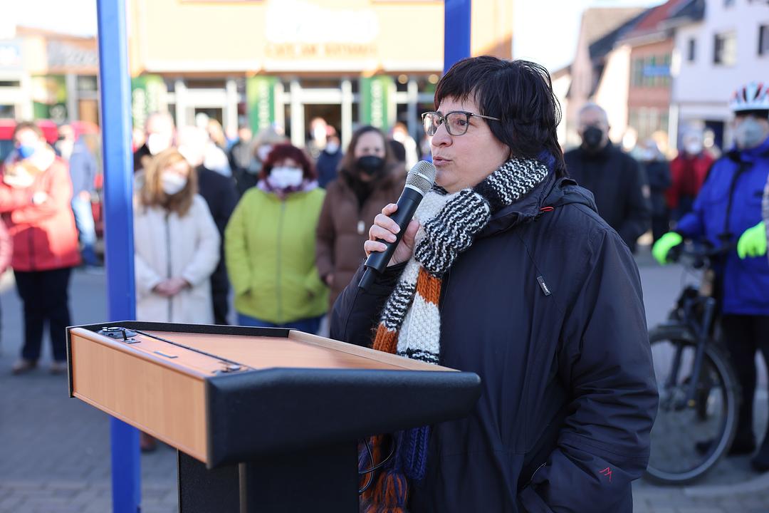 Micheal Rückl sprach als Fraktionsvorsitzender der Wölfersheimer Grünen stellvertretend für die vier Fraktionen in der Gemeindevertretung. In seiner sehr persönlichen Ansprache ging er auf seine Erfahrungen der letzten Tage ein. Noch vor wenigen Tagen habe er beruflich mit Menschen aus der Ukraine zusammen gearbeitet. Der Kontakt sei inzwischen komplett abgerissen. Er unterstrich, dass nicht die Menschen in Russland, sondern das Putin Regime für diesen Krieg und diese Tragödie für Europa verantwortlich sei. Die Erste Kreisbeigeordnete Stephanie Becker-Bösch sprach ihren Dank all jenen aus, die sich bereits am Wochenende als ehrenamtliche Flüchtlingshelfer auf den Weg in Richtung der Grenzen gemacht haben um den Menschen zu helfen.