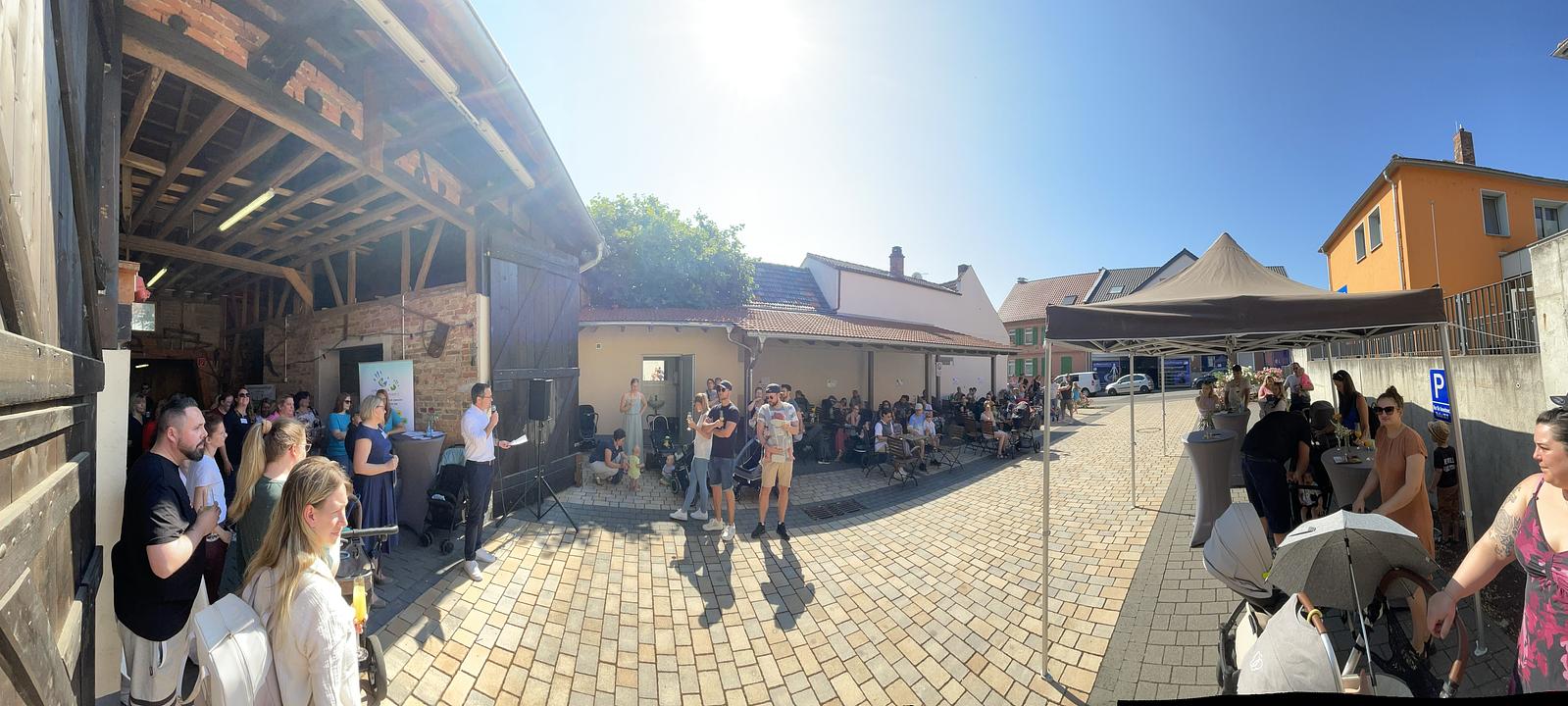 Schon am Eingang zum Gelände wurden die Besucher von Seifenblasenkünstlerin Christiane Alles begrüßt, die mit ihren kleinen und riesigen Seifenblasen nicht nur den mitgebrachten Geschwistern ein Lächeln ins Gesicht zauberte. Bürgermeister Eike See und die im Rathaus für die Kindertagesstätten zuständige Fachbereichsleiterin Nicole Stelzner-Lehmann begrüßten die Eltern am Eingang der Scheune. Im Grußwort wurde deutlich, welchen Stellenwert das Thema Kinderbetreuung in der Gemeinde einnimmt. Stelzner-Lehmann betonte, dass der Baby- und Kleinkinderempfang eine gute Möglichkeit ist erstmals in Kontakt zu treten und Fragen zu beantworten. Natürlich steht die Verwaltung auch im Anschluss daran für weitere Fragen zur Verfügung.