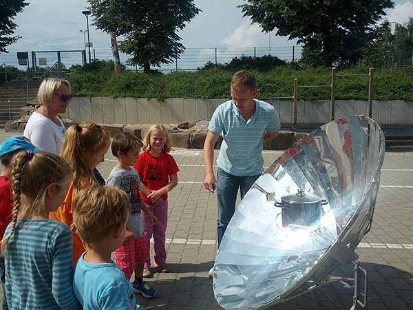 Um die Kraft der Sonne nutzen zu können benötigt man keine teure Photovoltaikanlage. Klimaschutzmanager Markus Michel demonstrierte unlängst, wie man auch mit einfachen Spiegeln und einem Topf kochen kann.