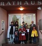 Hagel und Sturm konnten die Sternsinger der Wölfersheimer katholischen Kirche nicht davon abhalten, dem Team des Wölfersheimer Rathauses um Bürgermeister Rouven Kötter gemäß altem Brauch einige Lieder und ein Gedicht vorzutragen.