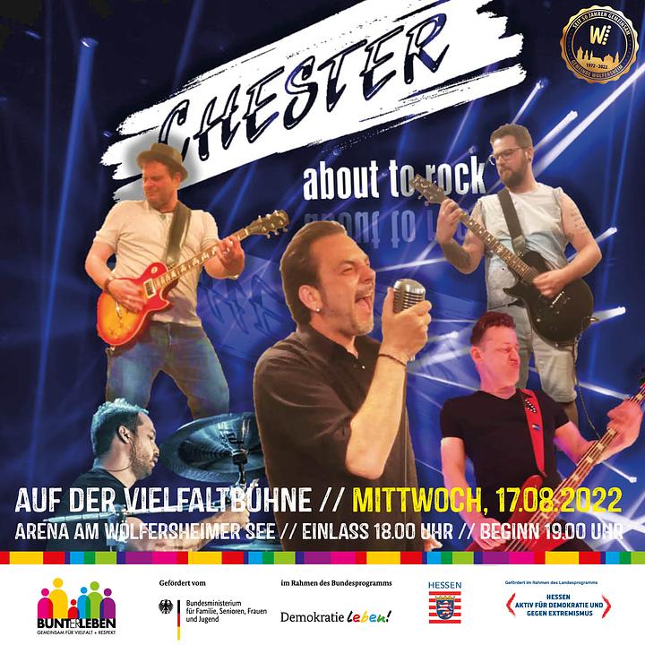 Wer am Mittwochabend auf der Vielfaltbühne am Wölfersheimer See die Frankfurter Formation »Stubbemussik« - unter anderem mit Ex-Flatsch-Mitglied und Comedian Olaf Mill - erwartet hatte, der wurde enttäuscht. Die Band, der auch Achim Dürr, der singende Frontmann der Neuen Philharmonie angehört, musste kurzfristig krankheitsbedingt absagen. Doch ohne Musik nach Hause gehen musste niemand. Innerhalb weniger Stunden konnte für ein Ersatzprogramm gesorgt werden: Die heimische Rockband Chester sprang kurzfristig ein, obwohl auch die sich gerade im Urlaubsmodus befindet, wie Gitarrist Marc Senyar verkündete. Und der zweite Gitarrist, Marius Wolf, als Bruchenbrückener der einzige Nicht-Wölfersheimer, musste ebenfalls krankheitsbedingt kurzfristig passen.