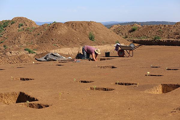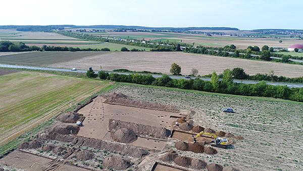 Wo künftig mehr als 550 Arbeits- und Ausbildungsplätze entstehen, lebten und arbeiteten bereits vor Jahrtausenden Menschen. Davon zeugen unter anderem die Überreste einer jungsteinzeitlichen Siedlung und Gräben römischer Straßen. Vor zwei Wochen luden die Gemeinde Wölfersheim, die Archäologische Denkmalpflege des Wetteraukreises und der HessenArchäologie gemeinsam zu einem Tag der offenen Grabung auf dem künftigen REWE-Gelände an der A45 bei Berstadt ein. Zahlreiche interessierte Bürger nutzten die Gelegenheit, sich eine der größten zur Zeit laufenden Ausgrabungen in Hessen anzuschauen.